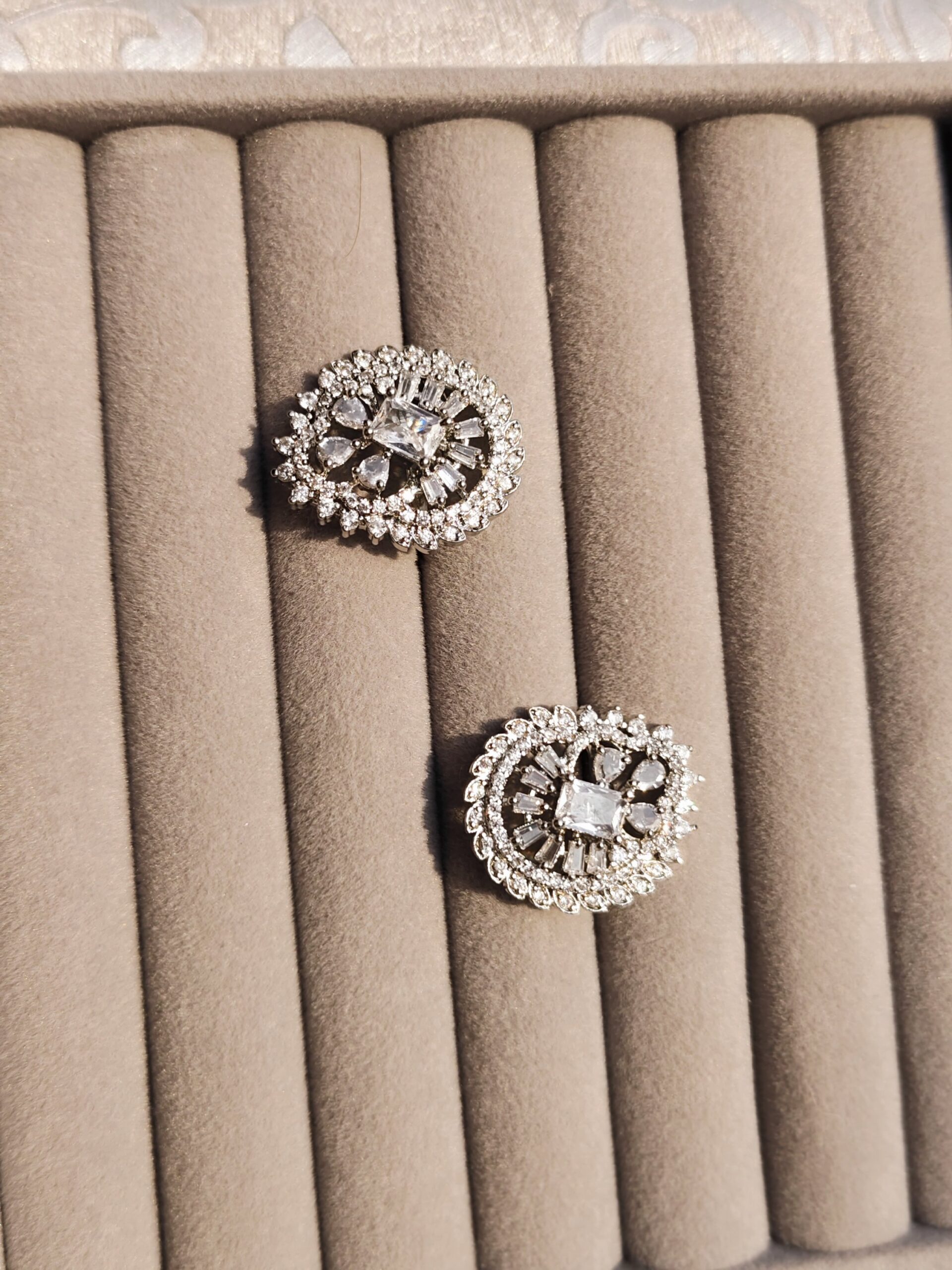 Midnight Spark Gunmetal American Diamond Stud Ring