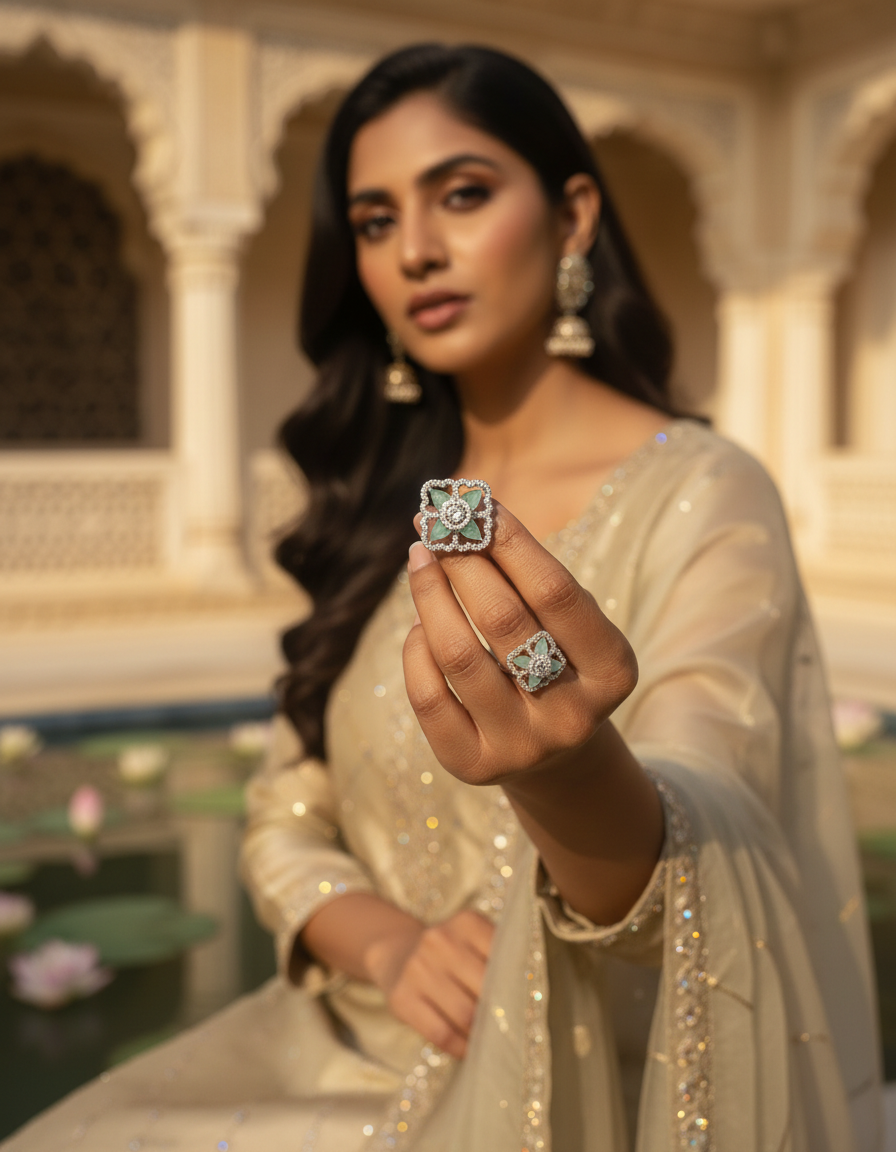 The Silver Cluster Ring brings together elegance and shine with a refined, modern design. Crafted from high-quality brass and finished with premium anti-tarnish silver plating, this ring retains its brilliance even with regular use.