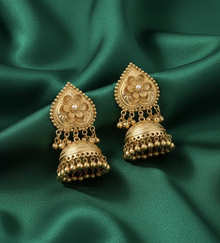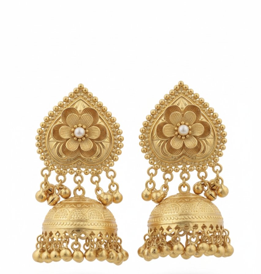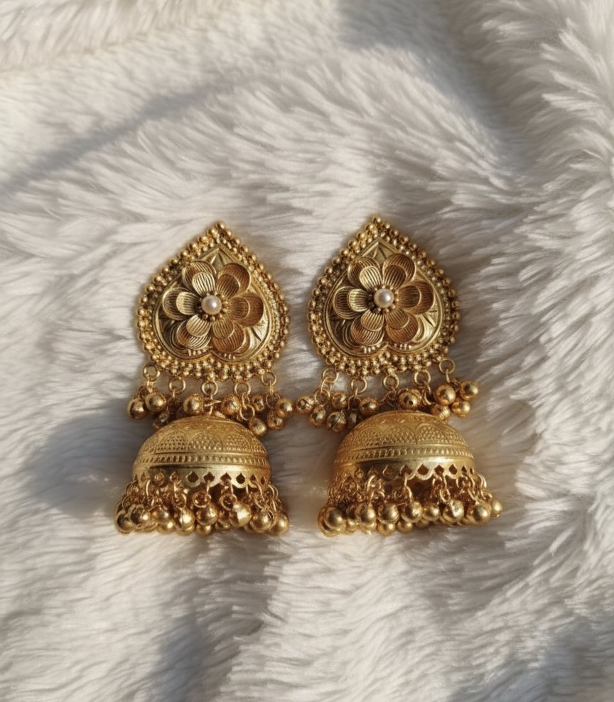 Designed to be skin-friendly and hypoallergenic, they offer irritation-free comfort for sensitive ears. The intricate jhumka detailing adds an elegant ethnic touch, making them ideal for weddings, festive occasions, or elevating a simple outfit.